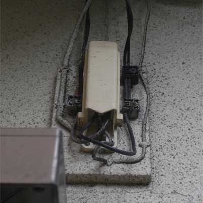 電線から電話線を辿ってこの矢印の箱がそうです。